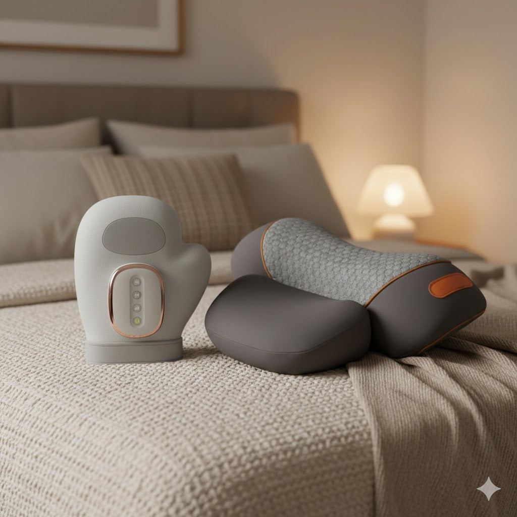 Built with soothing heat, gentle vibration, and supportive design, our products help you feel more at ease through the day and more comfortable at night.